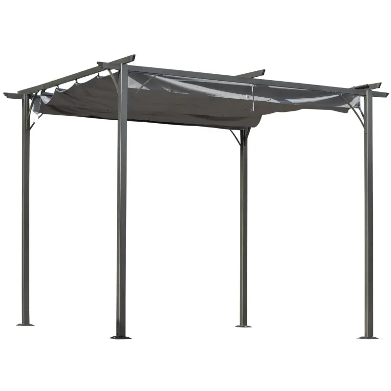 Outsunny Grey Steel Powder Coated Pergola 3M x 3M with Retractable Roof